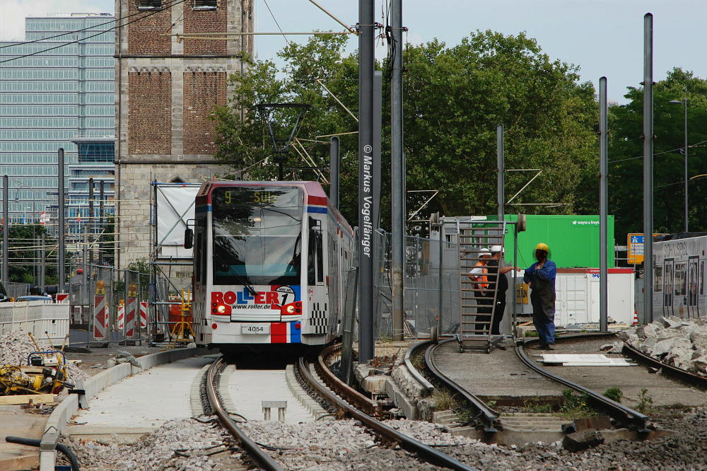 Wagen 4054 befährt auf der U-Bahn-Baustelle Heumarkt, das heute (13.08.2012) neu eröffnete Streckengleis Richtung Neumarkt.