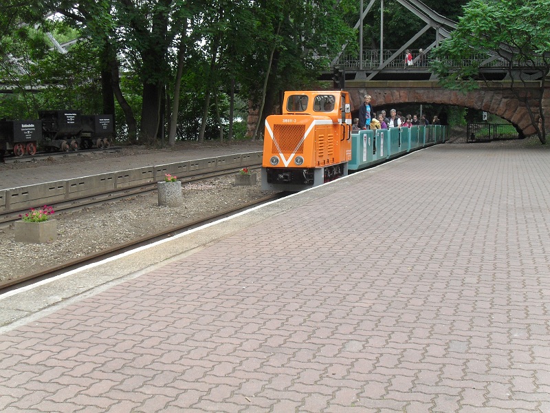 Bei einem Spaziergang bin ich am 21.07.2012 auch über die Peißnitzinsel gekommen. Ein Blick auf den Bahnhof musste natürlich auch sein. Hier fährt ein Personenzug, gezogen von der orangenen Ns2f in den Bahnhof Peißnitzbrücke ein.