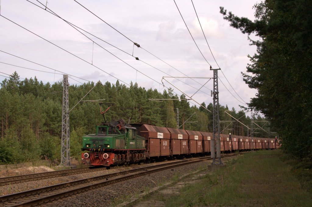 EL2 4-1224 ist am 17.08.'12 mit einem Braunkohlezug Richtung Schwarze Pumpe nahe Schleife unterwegs