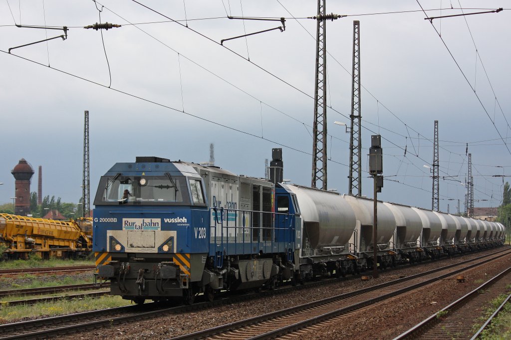 RTB V203 am 15.5.12 mit Silowagen in Duisburg-Bissingheim.
