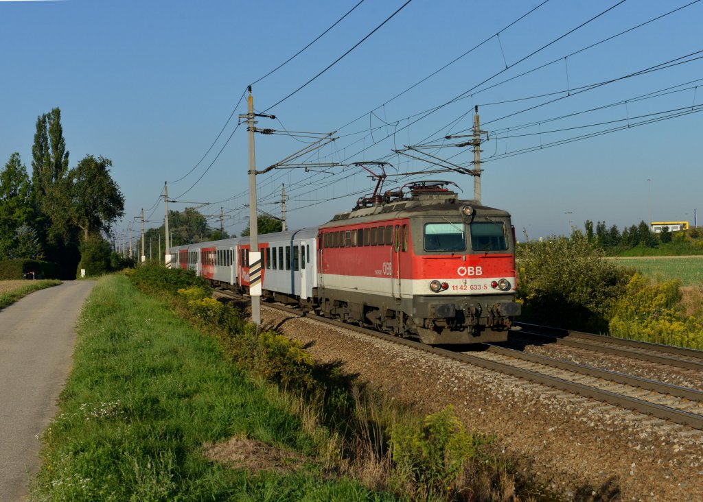 1142 633 mit einem REX nach Linz Hbf am 20.08.2012 unterwegs bei Marchtrenk.