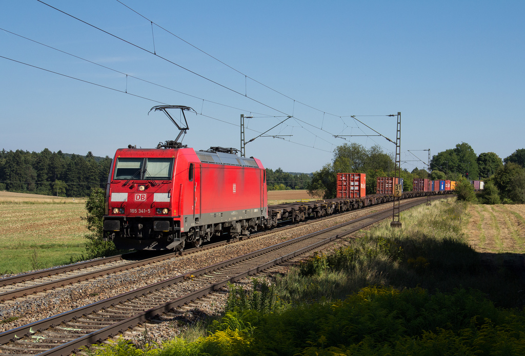 185 293-8 mit einem gemischten Güterzug bei Wernfeld (15.08.2012)