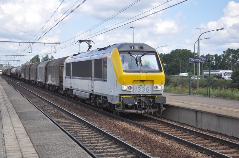 hle 1336 mit gemischter Güterzug in Bahnhof Antwerpen-Luchtbal 04.08.2012