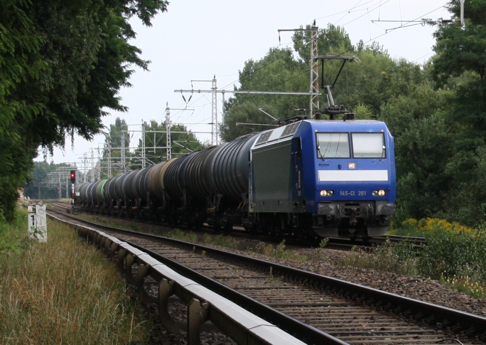 21.8.2012 zwischen Zepernick und Röntgental. 145 CL 201 mit Kesselzug Richtung Karower Kreuz.