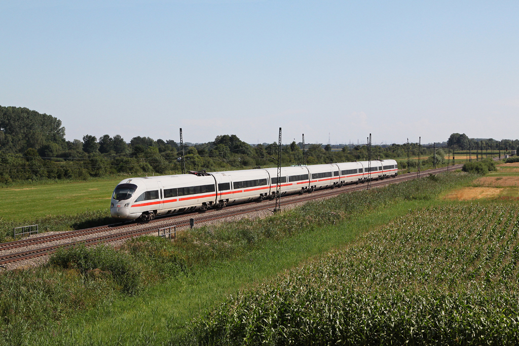 2 VT650 der Bodensee Oberschwaben Bahn machen sich auf den Weg nach Friedrichshafen Hafen, rechts ist der IC118 zu sehen, er befindet sich auf den Weg nach Münster (Westf.). Aufgenommen südlich von Aulendorf (03.08.2012)