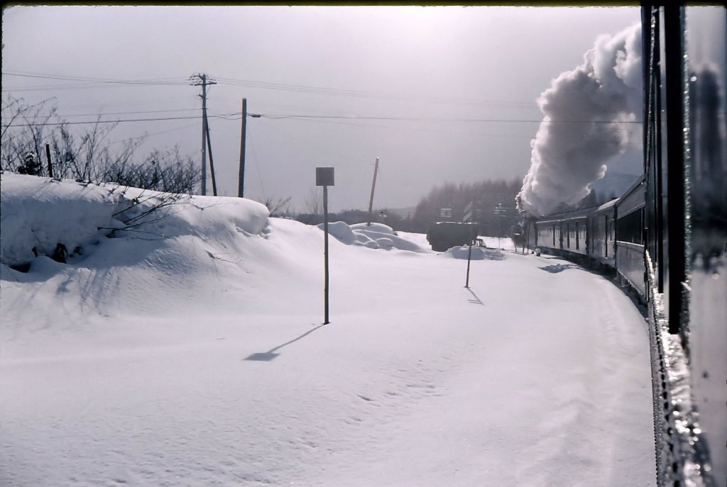 Auf der Fahrt hinter Lok C55 30 durch die sagenumwobene einsame Wildnis von Nord-Hokkaidô, 27.Dezember 1971.