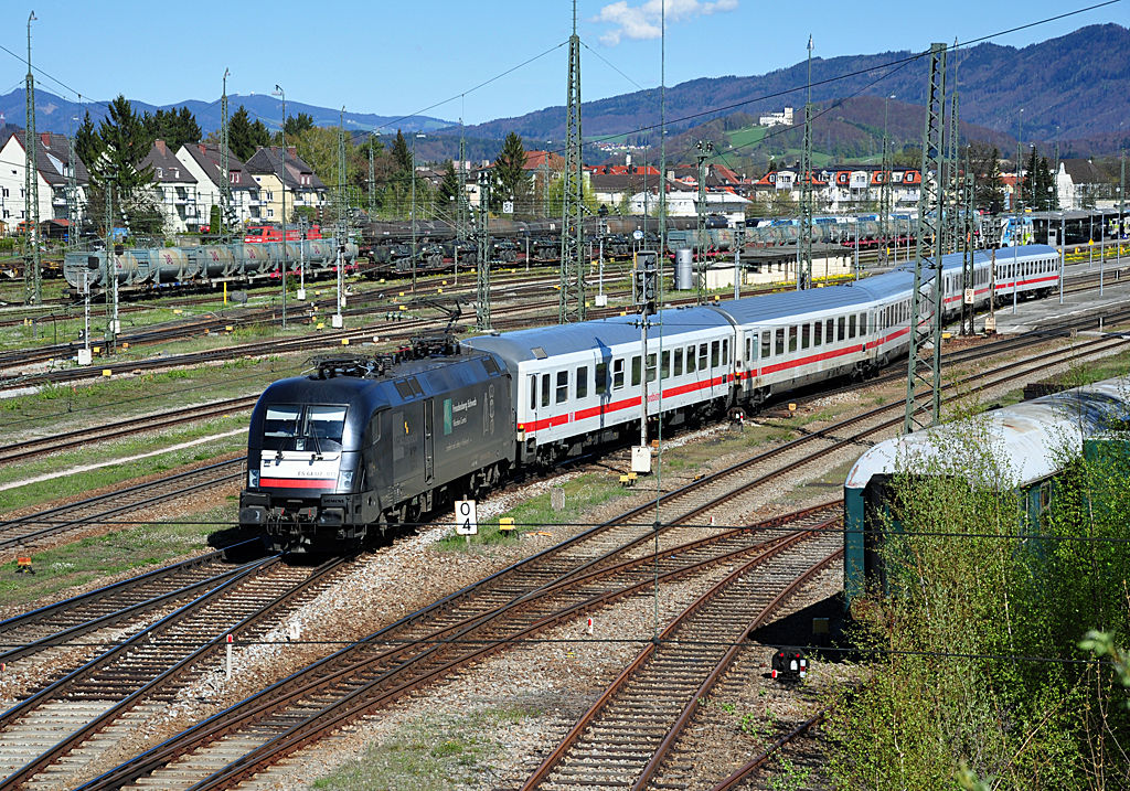 ES 64 U2-073 mit EC schlängelt sich durch Freilassing - 25.04.2012