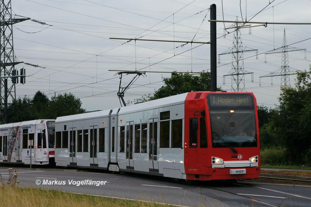 Wagen 4107 wurde die Ganzreklame "Turkish Airlines" entfernt. Hier zu sehen bei der Einfahrt zur Endhaltestelle Weiden West am 31.07.2012.