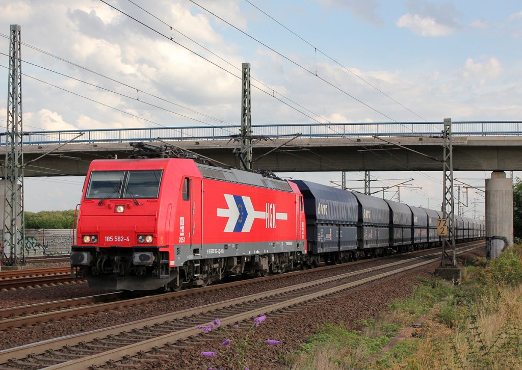 185 569-1 vermietet an die Neusser Eisenbahn überqurte am 16.08.2012 mit dem Staubsilozug von Neuss nach Deuna den Bekeviadukt in Altenbeken.