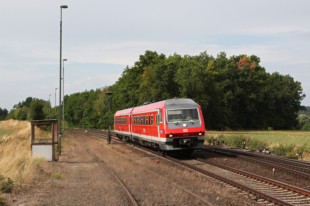 628 344, wartet im Bahnhof von Aulendorf/Oberschwaben auf den nächsten Einsatz, Aug.2012