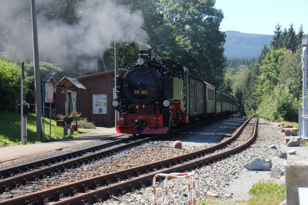 99 6101 der HSB als Gastfahrzeug bei der Brohlatalbahn bei der Einfahrt in Brohl (25.08.2012)