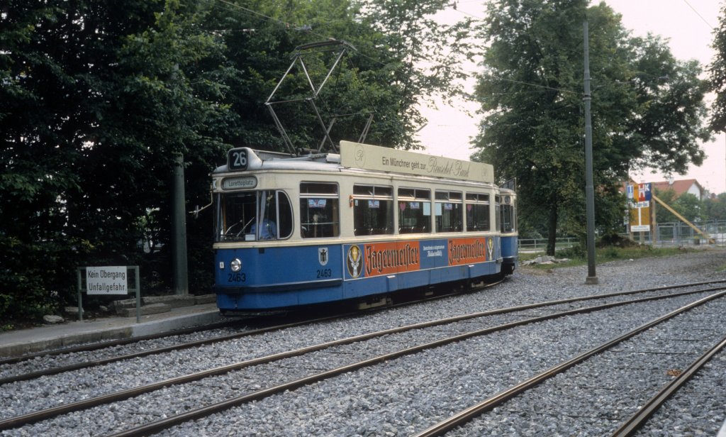 München MVV Tramlinie 26 (M4.65 2463) Fürstenried-West, Neurieder Strasse im Juli 1987.