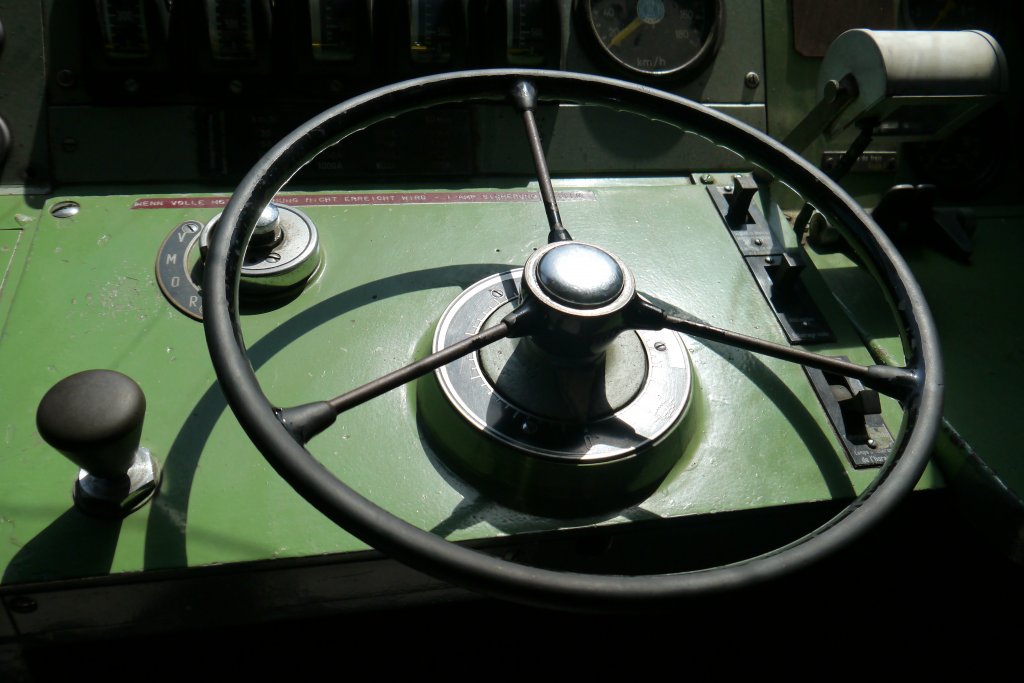 Nein, das ist kein Lenkrad eines Autos, sondern das Handschaltrad der 181 001. (DB Museum Koblenz-Lützel, 24.07.12)