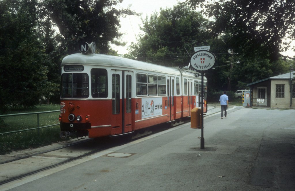 Innsbruck IVB SL 1 (Lohner-/ELIN-Grossraumtriebwagen 64, Bj 1960) Falkstrasse am 23. Februar 1984.