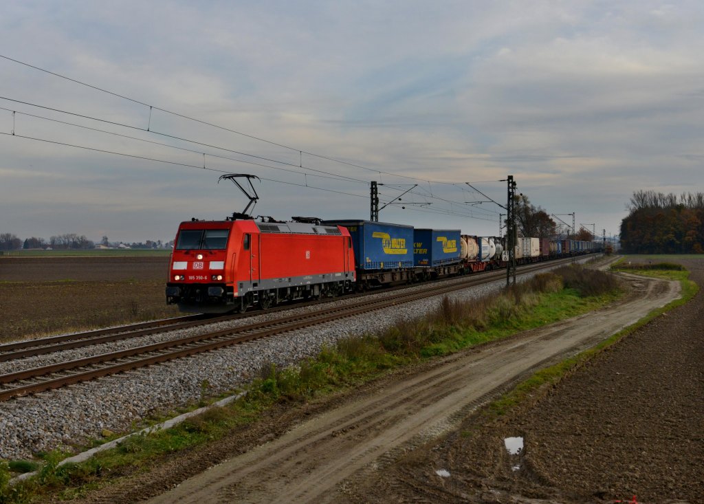 185 350 mit einem KLV am 10.11.2012 unterwegs bei Langenisarhofen.
