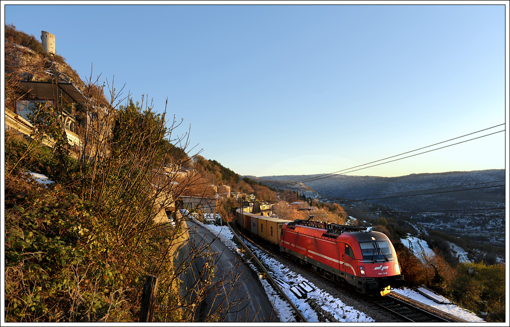 541 013 mit einem Güterzug auf der Koperramte am 12.12.12 kurz vor dem Bahnhof Črnotiče in Podpeč aufgenommen.