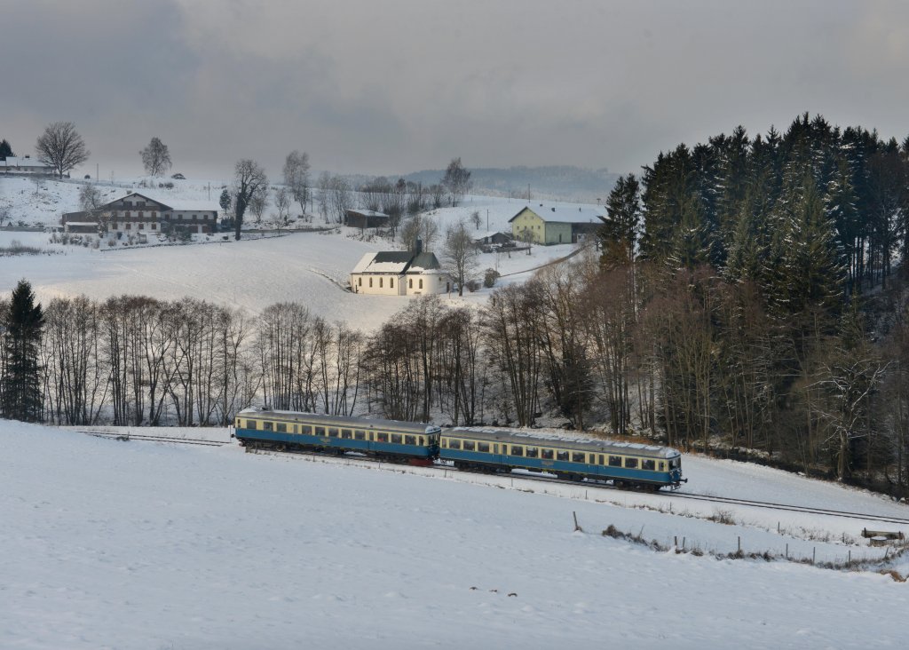ZB 2 der Zillertalbahn und die bosnische 83-180 dampfen auf der Feistritztalbahn, mit einem Adventzug, von Weiz nach Birkfeld. Koglhof 9.12.2012