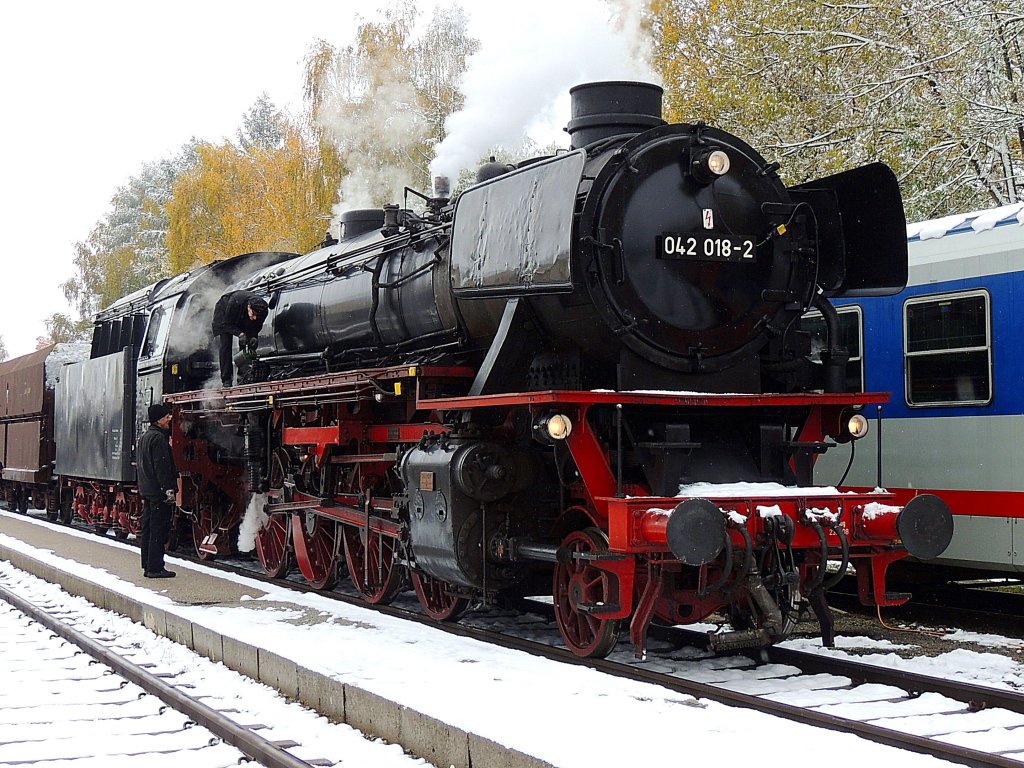 "Schmierpause" für 042 018-2(BauNr24320; Baujahr 1939) am Bhf. Ried; 121028
