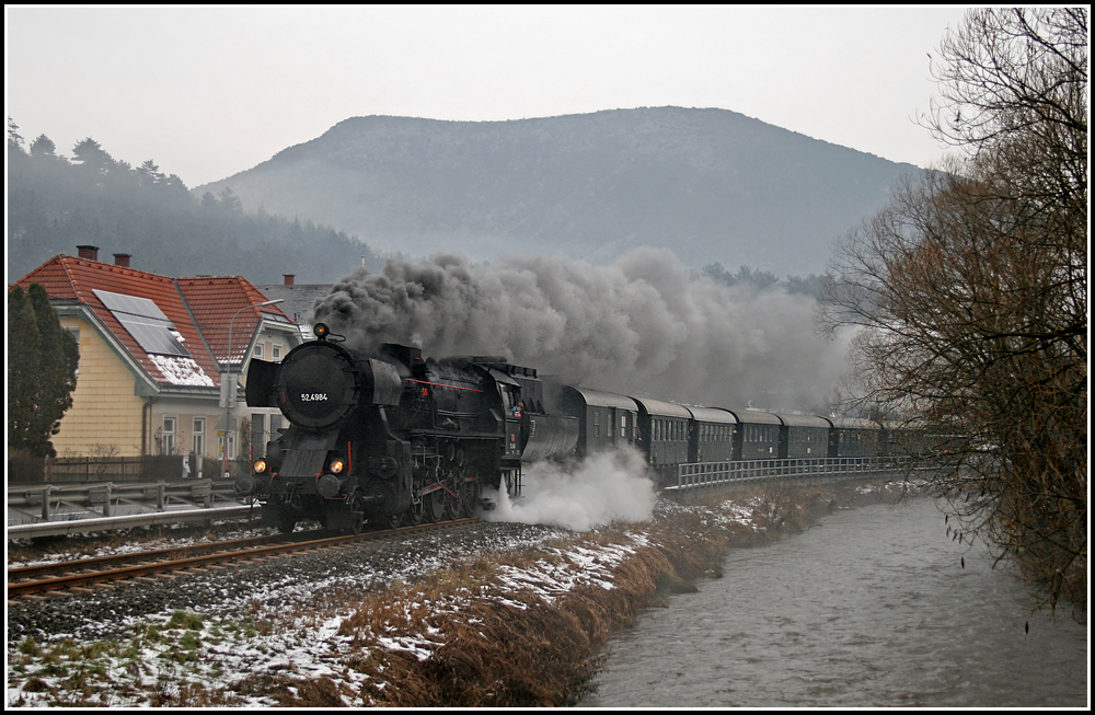Eine kleine Impression der 52.4984 entstand am 24.12.2012, während sie die letzten Meter nach Gutenstein als SR 14091 (Woe - Gt) zurücklegt. >> www.lokteam.at <<