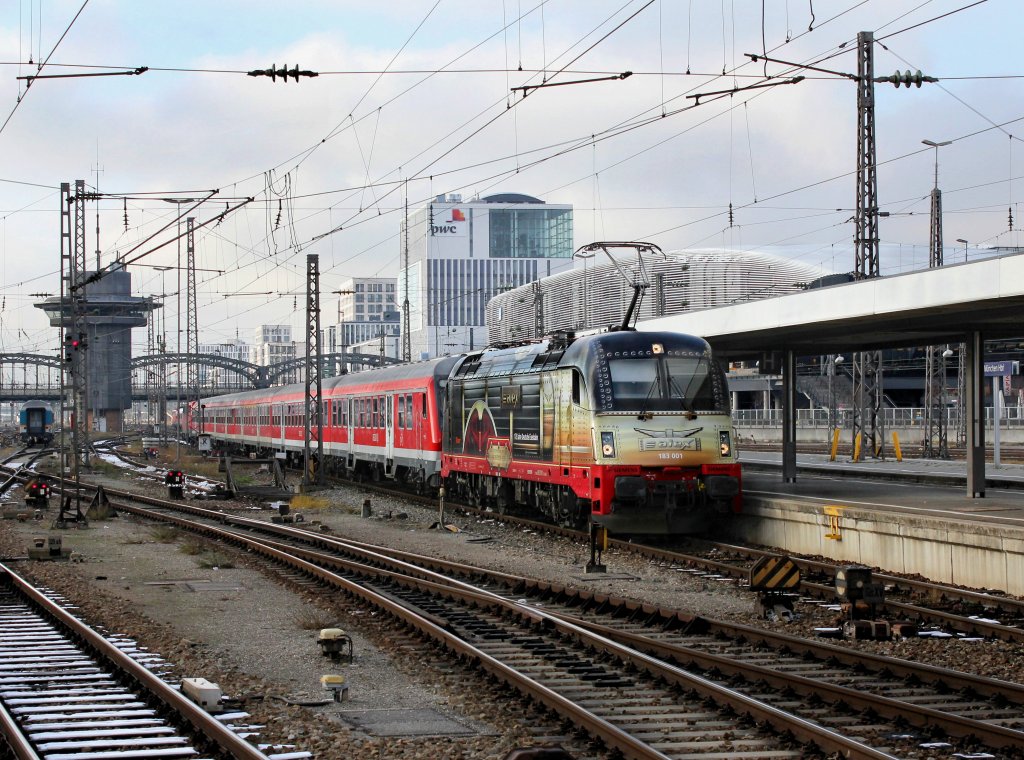 Die 183 001 am 01.12.2012 bei einer Rangierfahrt im Münchner Hbf.