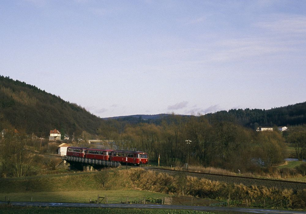 798 823 am 05.12.1992 bei Ederbringhausen im Rahmen der Sonderfahrt  Abschied von der Edertalbahn
