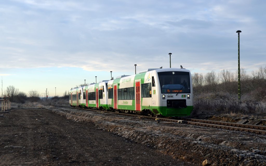 Eine dreiteilige Einheit der Erfurter Bahn erreichte am 01.12.12 aus Saalfeld kommend Pegau. Nach kurzem Halt fuhren sie weiter zum Leipziger Hauptbahnhof.