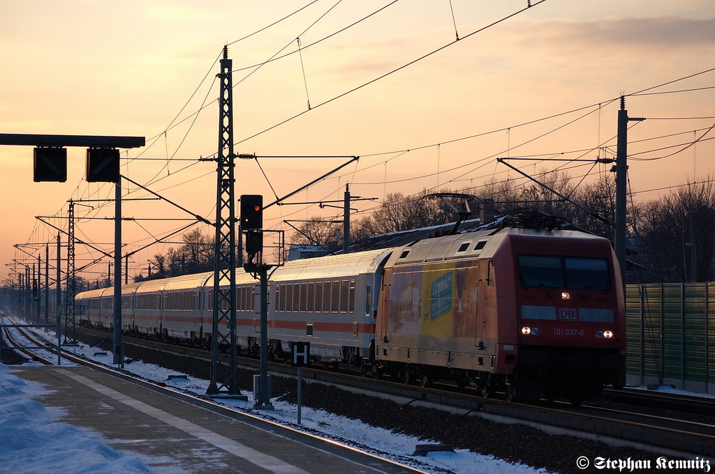 101 037-0  Klagenfurt Touristik  mit dem IC 145 von Schiphol (Airport) nach Berlin Ostbahnhof in Rathenow. 10.02.2012