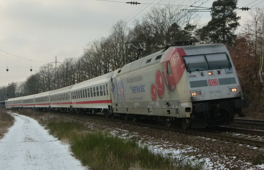 101 003-2 schiebt den IC 2010 von Tübingen Hbf nach Berlin Südkreuz durch Rathenow. 10.02.2012