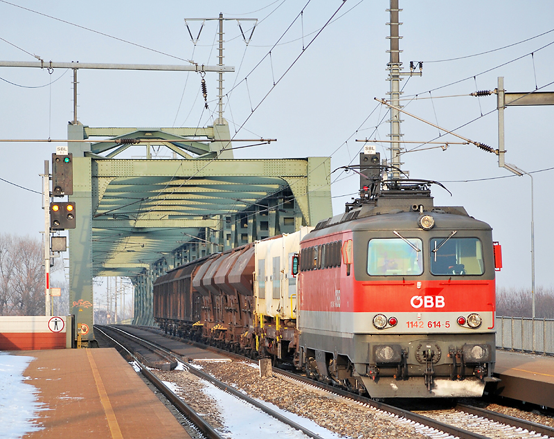 1142 614 von Stadlau kommend bei der Durchfahrt in Wien-Praterkai am 8.2.2012.