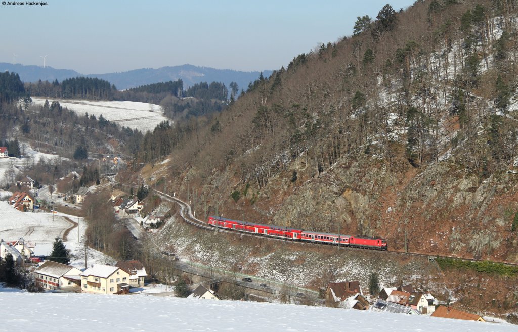 143 042-0 mit der RB 26929 (Freiburg(Breisgau) Hbf-Neustadt(Schwarzw) bei Falkensteig 5.2.12