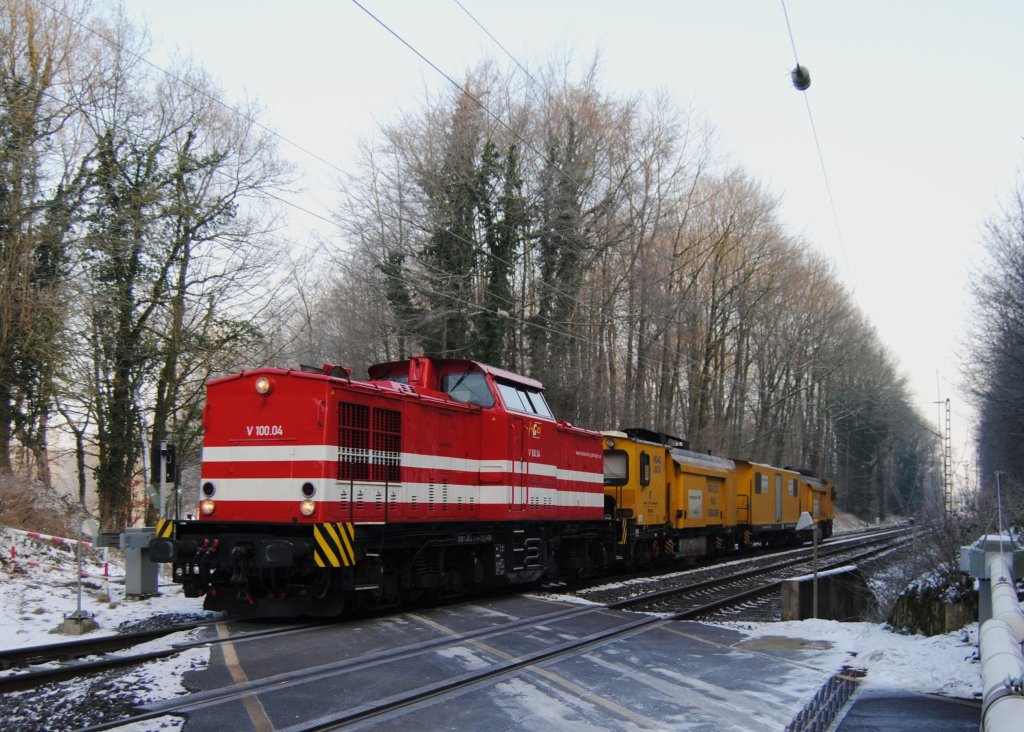 Improvisieren war angesagt als der Kaindlzug nach Hüttau unerwarteterweise über das Gegengleis durch Salzburg-Süd geschickt wurde. 183 701 und SLB V83 am 2.2.2012.