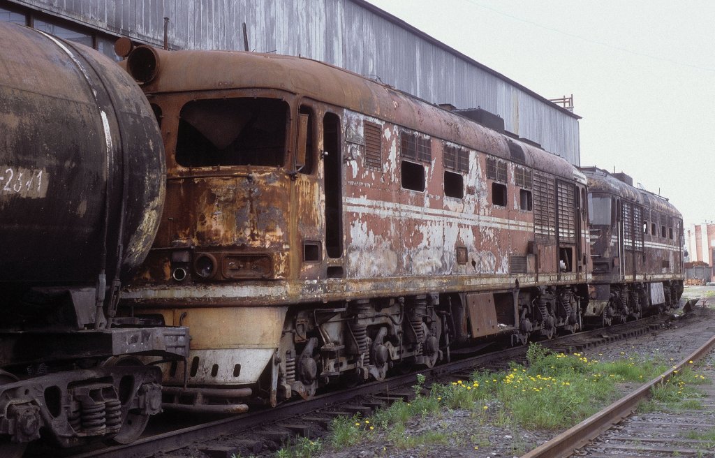 329 502 ist mit einem Spezialtransport unterwegs in Richtung Wangerooge Stadt, 20.05.1989. Der Yachthafen, von dem aus diese Aufnahme 1989 möglich war, existiert schon lange nicht mehr.