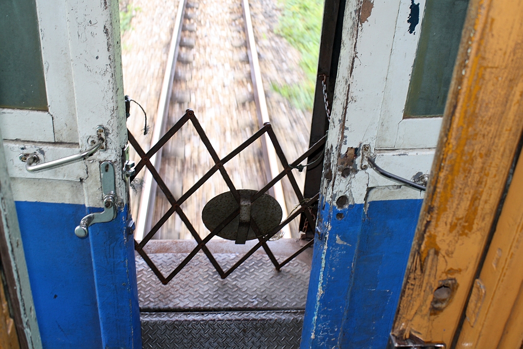 Auch wenn die Türe links im Bild über ein Schloß verfügt so bedeutet dies noch lange nicht, daß es auch funktioniert. Situation im บชส. 237 (บชส. =BTC./Bogie Third Class Carriage), eingereiht als letzter Wagen des ORD 463 am 11.Jänner 2012.