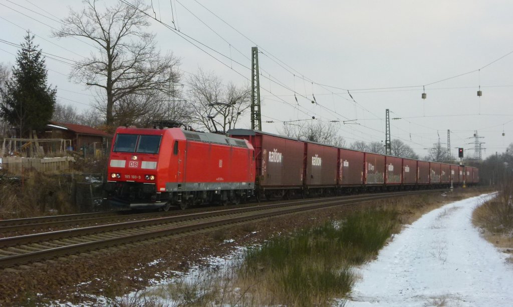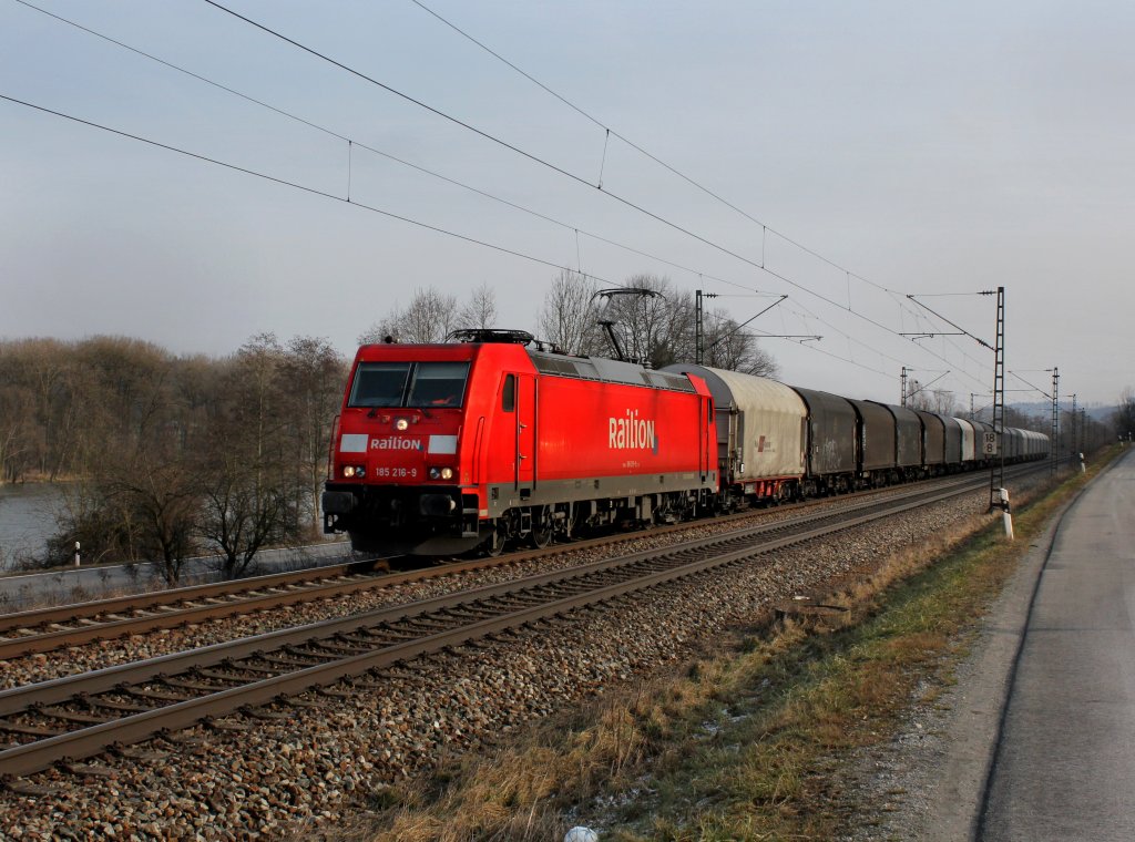 Die 185 216 am 29.01.2012 mit einem Stahlzug unterwegs bei Vilshofen.
