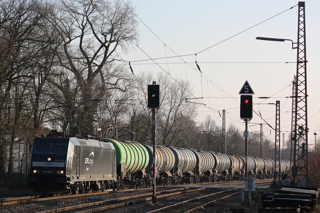 BSM Lok Max 80 am 6.2.12 mit einem Gaskesselwagenzug bei der Durchfahrt durch Duisburg-Entenfang.