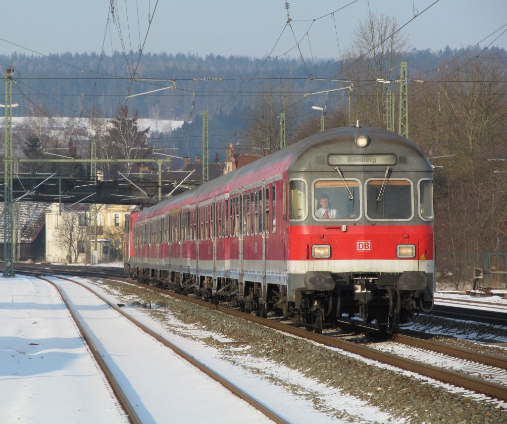 Eine Regionalbahn von Saalfeld nach Bamberg erreicht am 10. Februar 2012 den Kronacher Bahnhof.