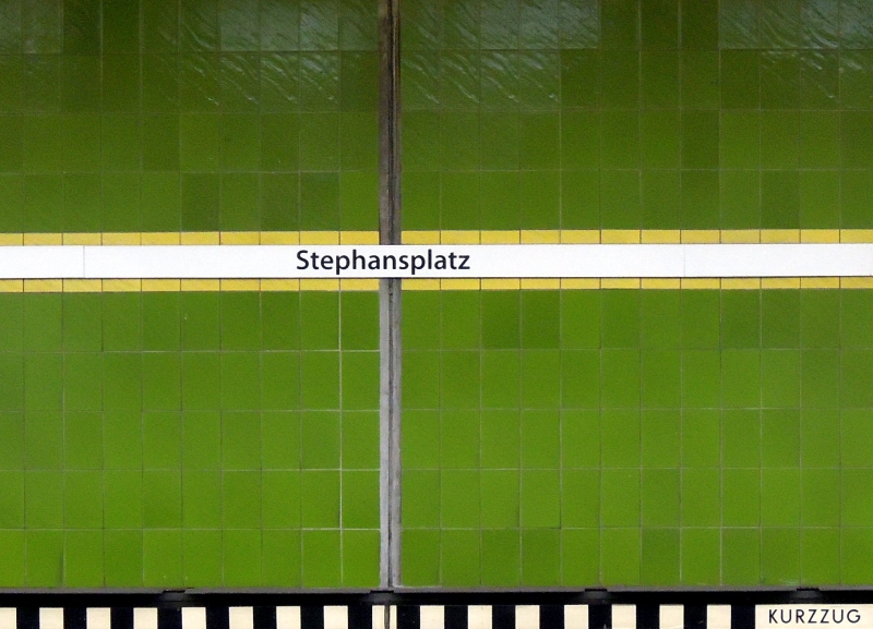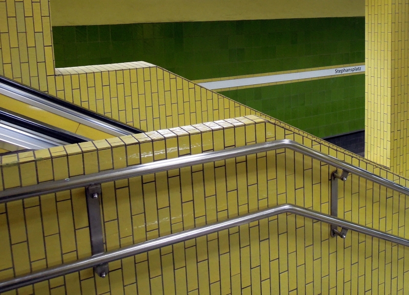 Ursprünglich (1929) in Blau/Weiß gehalten, präsentiert sich der Hamburger U-Bahnhof Stephansplatz seit knapp 40 Jahren in Grün/Gelb. 5.2.2012
