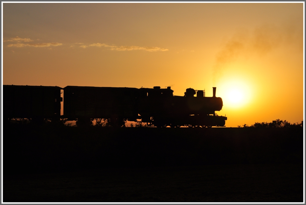 Die Nacht senkt sich ziemlich schnell über den Güterzug, der sein Ziel Asmara bald erreichen wird. (30.01.2012)