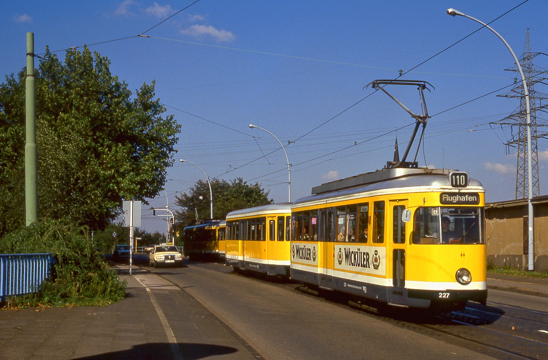 Mülheim Tw 227 und Bw 189 in der Friedrich Ebert Straße in Styrum, 30.09.1987.