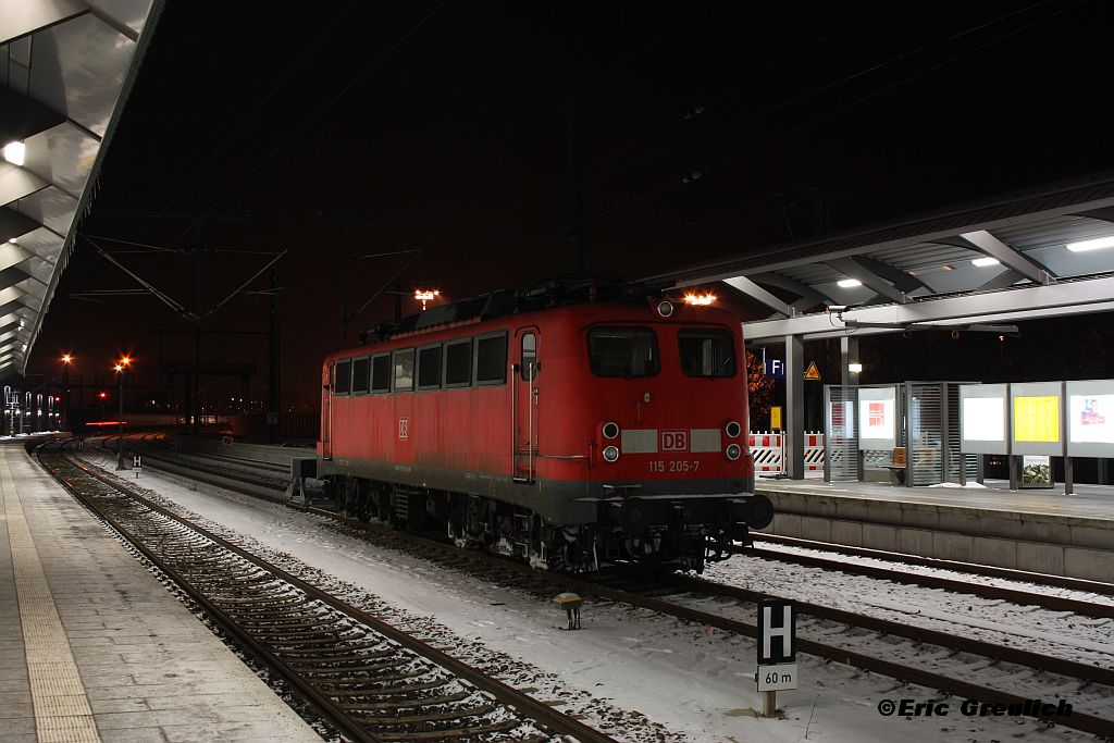 120 118-5 mit dem IC 185 (Stuttgart Hbf-Zürich HB) bei Horb 12.2.12 Das Bild entstand hinter einem Prellbock