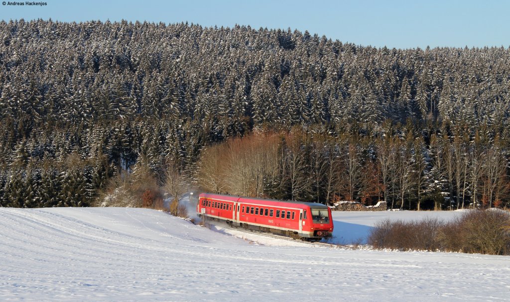 aus Nürnberg, KBS 860 Nürnberg - Marktredwitz, fotografiert bei Immenreuth am 11.02.2012 --> bei knackigen -21°C war das Warten auf den verspäteten Sonderzug ein recht frostiges Erlebnis