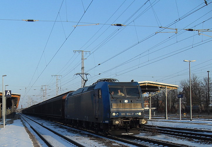 Am 11.02.2012 fuhr die 185 514 durch Stendal.
