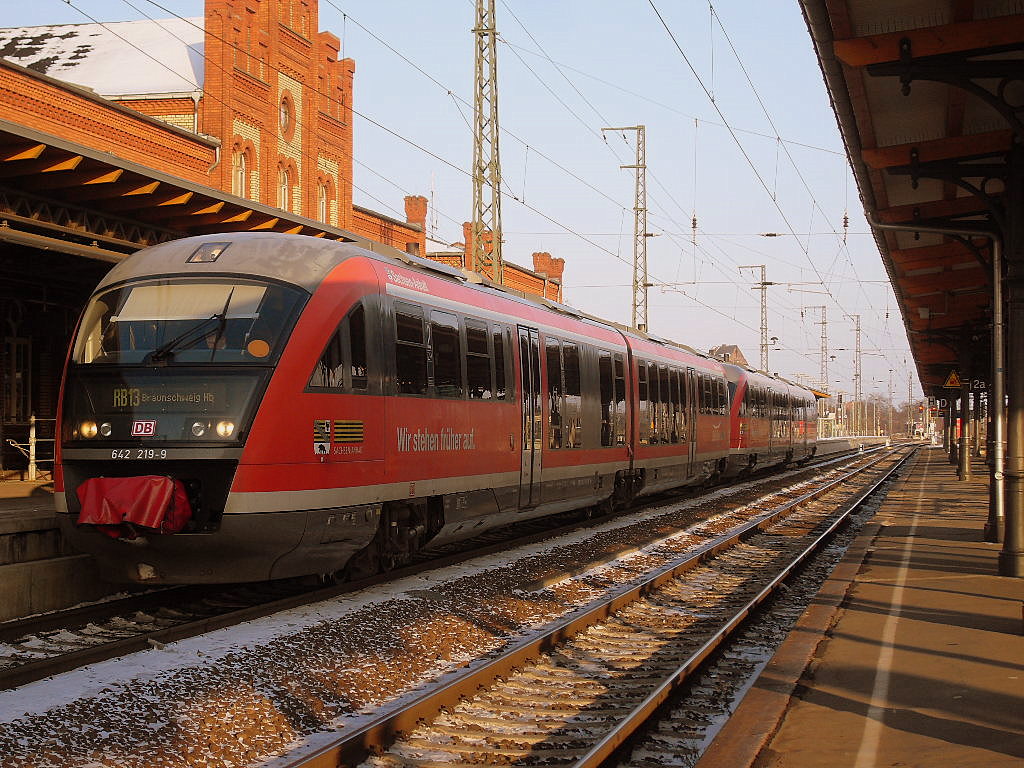 642 699 als RB Stendal-Rathenow kurz vor seiner Abfahrt am 16.02.2010 im Bahnhof von Stendal