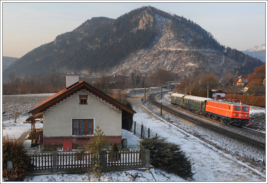 Für eine kleine Gruppe aus England gab es dieser Tage Winterdampf in der Steiermark. Hier sieht man die dienstälteste Dampflok der Welt, die 671 der Gkb mit dem SPZ 8519 auf der Fahrt von Graz Köflacherbahnhof nach Wies Eibiswald. Wies 5.2.2012