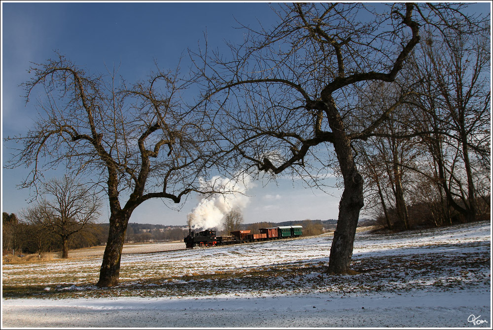 U8 im Zuge einer Sonderfahrt für eine englische Reisegruppe auf der Feistritztalbahn am 6.2.2012 in Parz kurz vor dem Grub Viadukt aufgenommen.