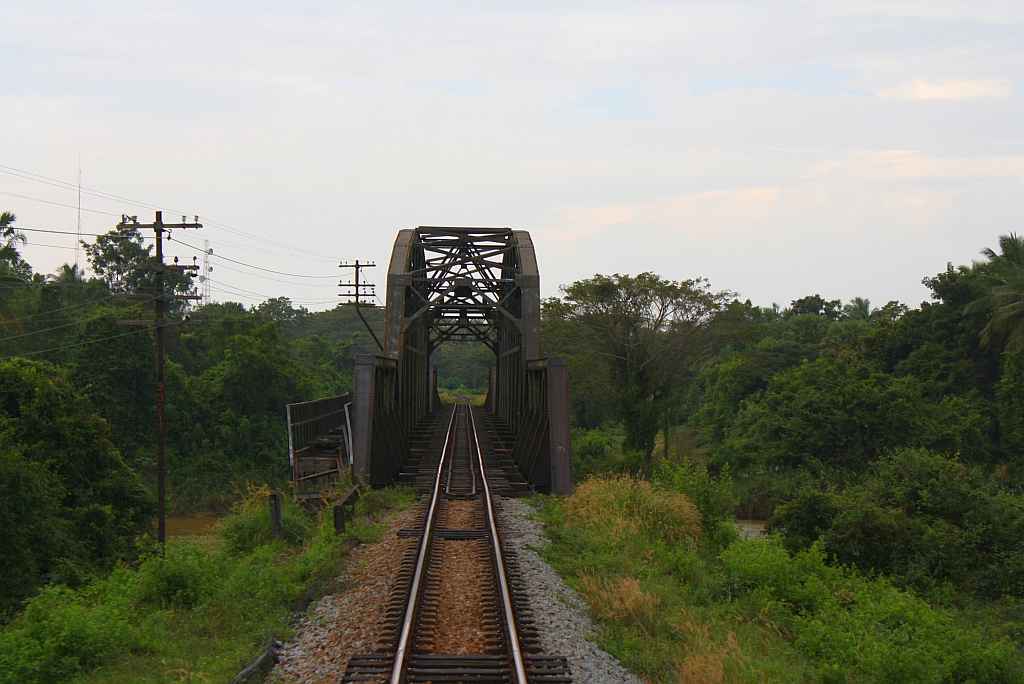 Gleich nach dem Bf. Thepha, im Km 992,7 überquert die Southern Line mit dieser 140m langen Brücke den Thepha River. Bild vom 11.Jänner 2012.