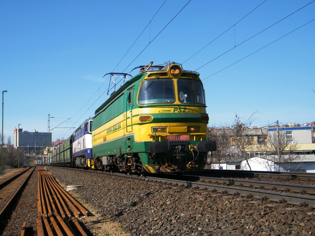 PSZ 240 128-9 und ZSSK Cargo 756 003-0 mit einem Güterzug zwischen Budapest-Kelenföld und Ferencváros, am 06. 03. 2010.