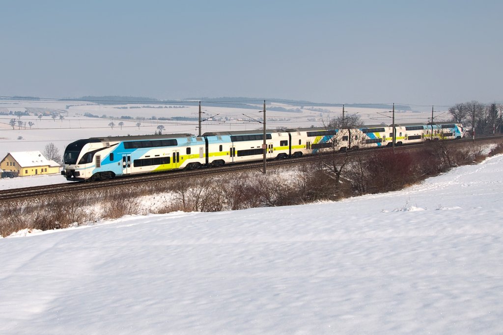 westbahn 17512, unterwegs von Wien Westbahnhof nach Freilassing. Die Aufnahme entstand am 11.02.2012 kurz nach Neulengbach.