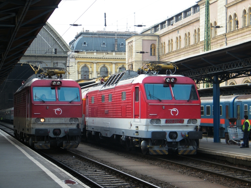 ZSSK 350 001-4 und 350 007-1 nebeneinander am Bahnhof Budapest-Keleti, am 15. 10. 2010.