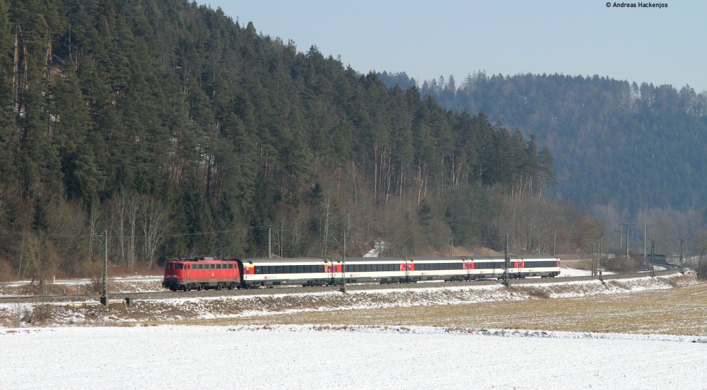101 060 erreicht am 11.02.12 mit ihrem IC 2355 Bitterfeld.